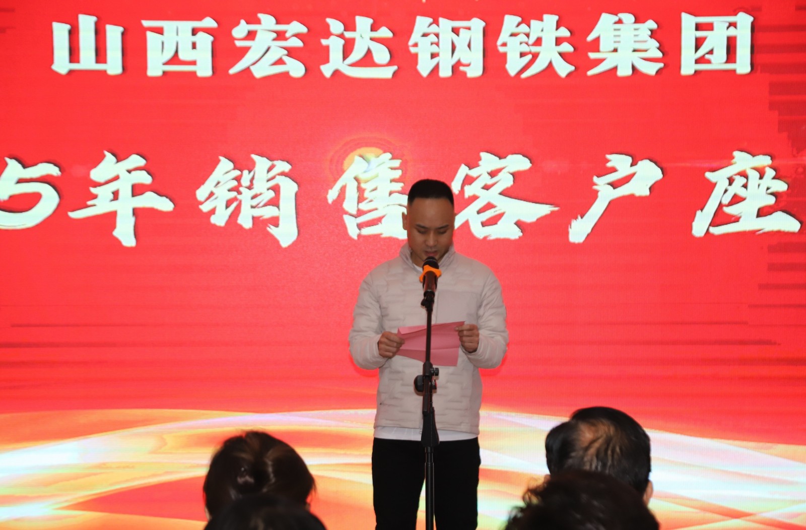 集團董事長張會民在答謝晚宴講話中指出,去年以來,宏達集團在各位銷售客戶的大力支持下,沉著應(yīng)對市場低迷的嚴峻挑戰(zhàn),優(yōu)化結(jié)構(gòu)豐產(chǎn)品,奮勇開拓創(chuàng)營銷,生產(chǎn)和銷售均取得積極成效。目前宏達集團出品的各種規(guī)格產(chǎn)品遠銷全國各地市場,特別是盤螺在山西、陜西、河南區(qū)域市場成為當之無愧的明星產(chǎn)品、網(wǎng)紅產(chǎn)品,與在座各位銷售客戶代表的大力支持與傾情推廣是分不開的。近年來,面對房地產(chǎn)市場萎縮、建材用量持續(xù)減少的狀況,宏達集團及早籌謀,全面完成裝備改造升級,成功開發(fā)Q195、30MnSi、45#等品種鋼,并實現(xiàn)規(guī)模生產(chǎn)與試銷,應(yīng)用前景廣闊,市場反響良好。同時借助寶武集團強大的技術(shù)支持,公司上馬KR、LF、LFV、RH等國內(nèi)及國際尖端的設(shè)備,合作建設(shè)國內(nèi)首條擁有完全自主知識產(chǎn)權(quán)的薄帶鑄軋生產(chǎn)線,實現(xiàn)我國冶金領(lǐng)域鑄軋一體化技術(shù)質(zhì)的突破。項目投產(chǎn)后,將生產(chǎn)熱軋?zhí)妓劁?、高強度鋼板等,可廣泛應(yīng)用于新能源汽車電機磁芯材料、風力發(fā)電機定子轉(zhuǎn)子、變壓器鐵芯等領(lǐng)域。2025年,宏達集團將在保證原有線材與盤螺等明星產(chǎn)品的基礎(chǔ)上,穩(wěn)步增加品種鋼的產(chǎn)量,持續(xù)進行特種鋼的研發(fā)。新的一年里,作為利益同享、風雨同舟的一家人,我們合作發(fā)展的基礎(chǔ)將更為牢固、我們并肩前行的道路將更為寬廣,宏達集團將與廣大銷售客戶代表們心往一處想,勁往一處使,通過優(yōu)化銷售政策、共同開拓新興市場,在全面建設(shè)全國一流現(xiàn)代化鋼鐵企業(yè)的宏偉征程上共同贏取輝煌的未來。